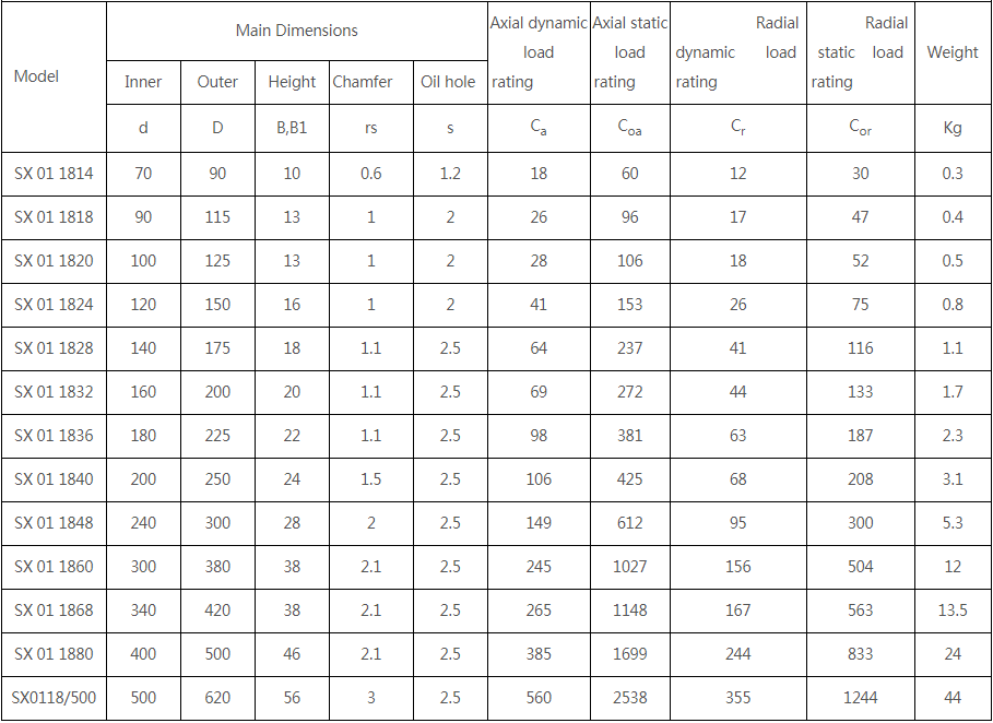 SX系列交叉圓柱滾子軸承型號尺寸參數(shù)